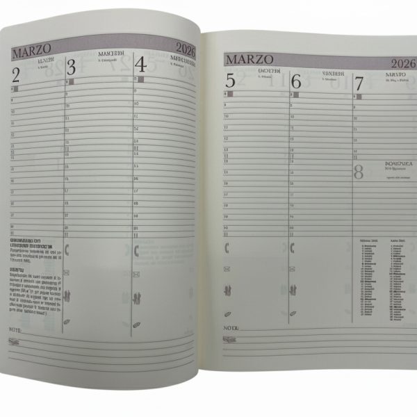 Agenda settimanale 21×26, colore blu, intercambiabile (copertina riutilizzabile per i prossimi anni), settimana su due pagine