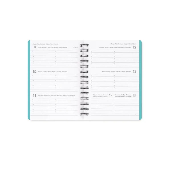 Agenda tascabile Colorband, bigiornaliera pagina divisa in due giorni, copertina liscia, con elastico, vari colori disponibili, dimensione 6×9.